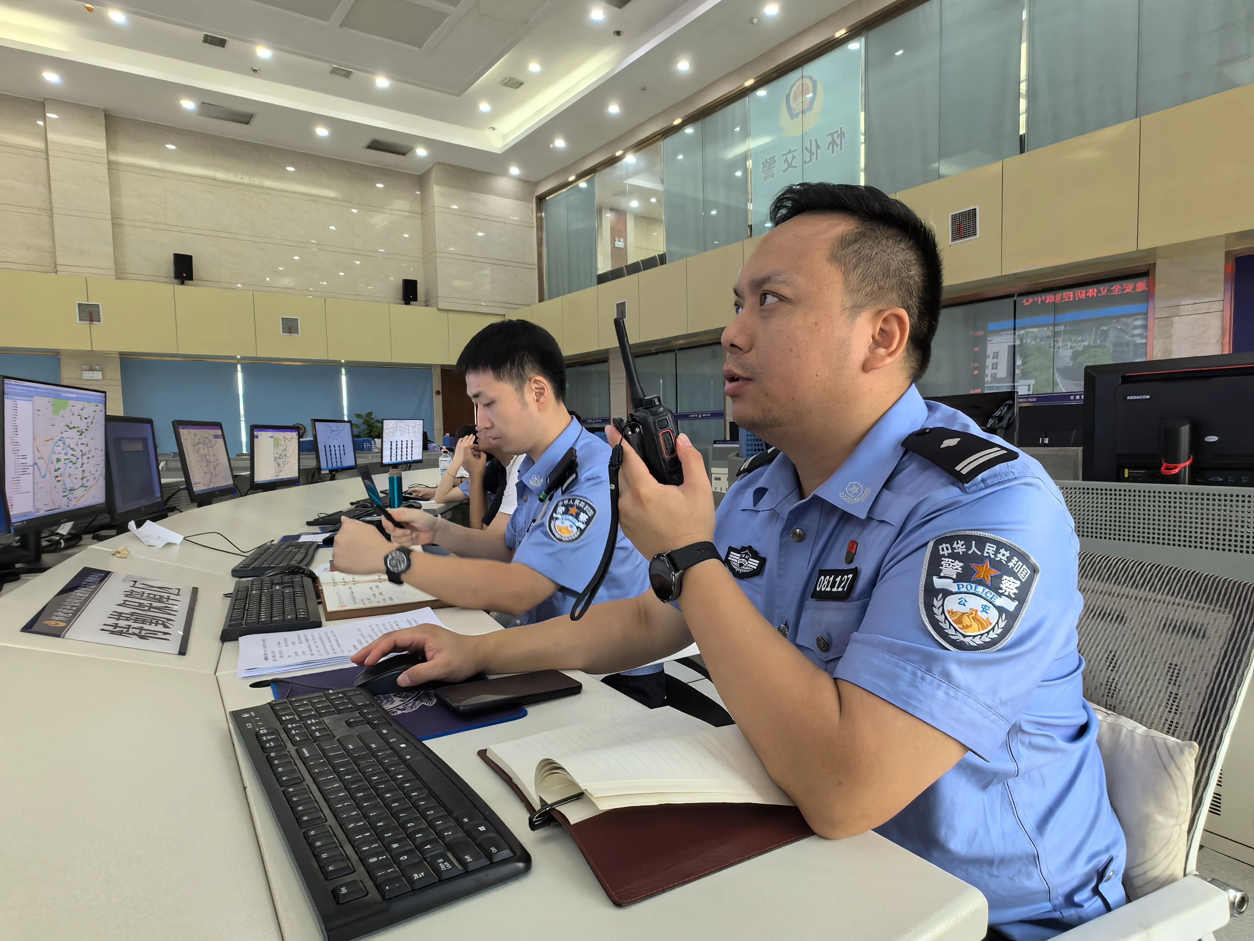 調度路面執勤民警進行交通疏導